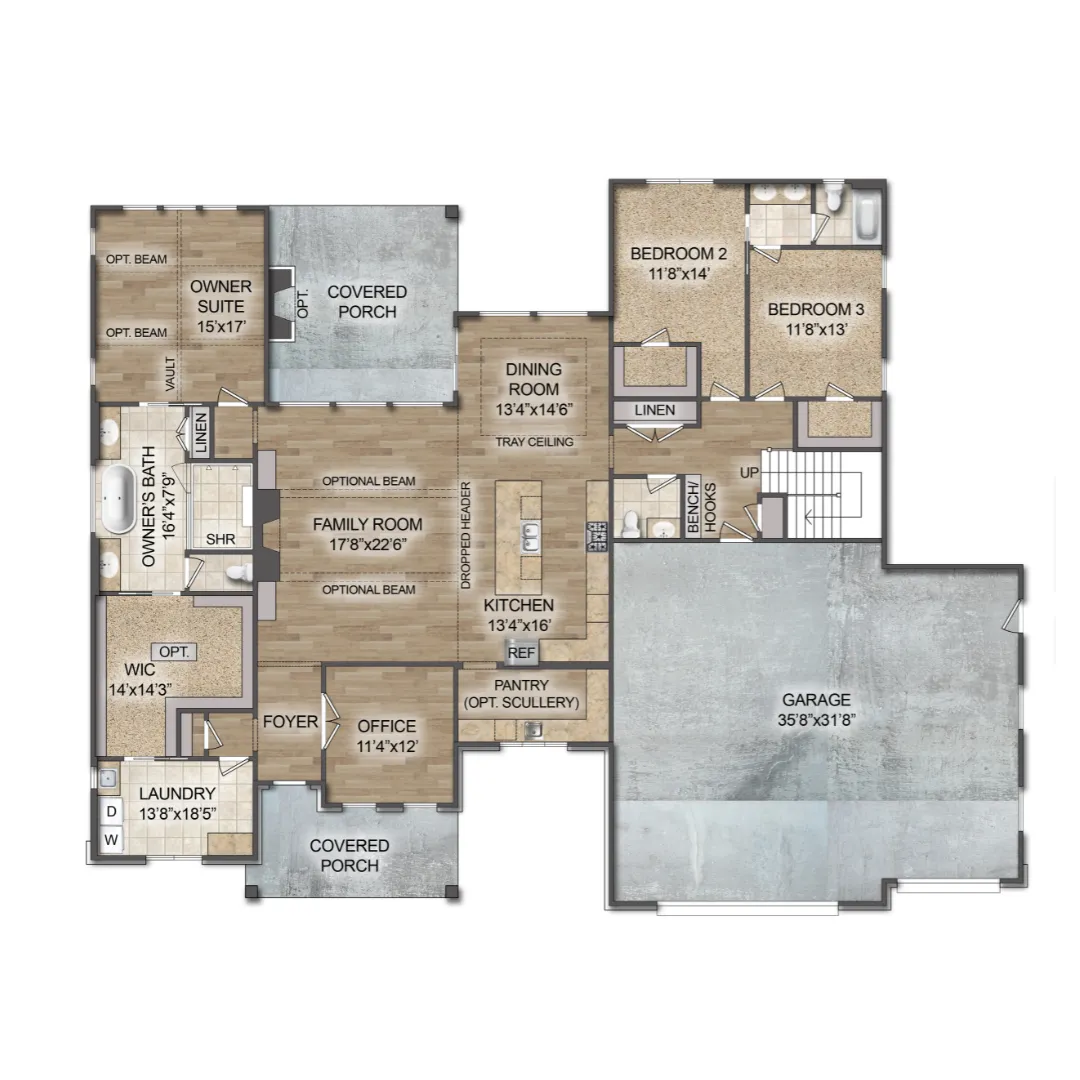 Choose from our array of stunning plans and elevation options that cater to diverse tastes and lifestyles. Together, we'll find the perfect match that echoes your personality and meets your needs.